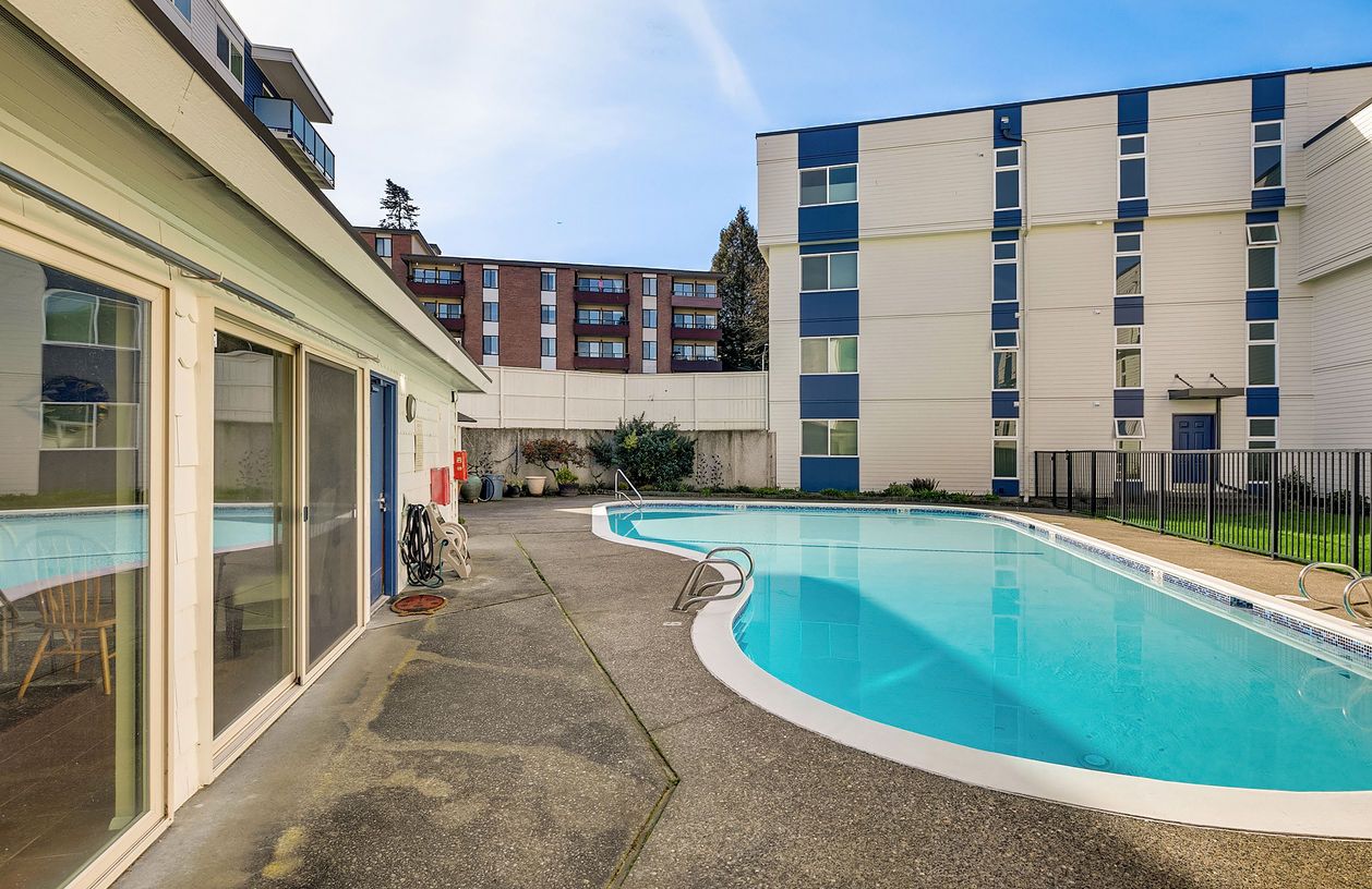 Fully updated gorgeous kitchen with slab granite counters, beautiful tile backsplash, lots of space and extra storage. Open dining and living rooms with gorgeous hardwood and direct access to the large, covered private deck – a great place to relax and entertain even on rainy days. Delightful common areas include a heated outdoor pool, sauna, and clubhouse with a fully equipped kitchen. Beautiful Lawton Park with all its trails are just across the street. Strong HOA, pets are welcome and rental cap still open. Extra storage. Easy access to transit, downtown, shopping, parks and more.