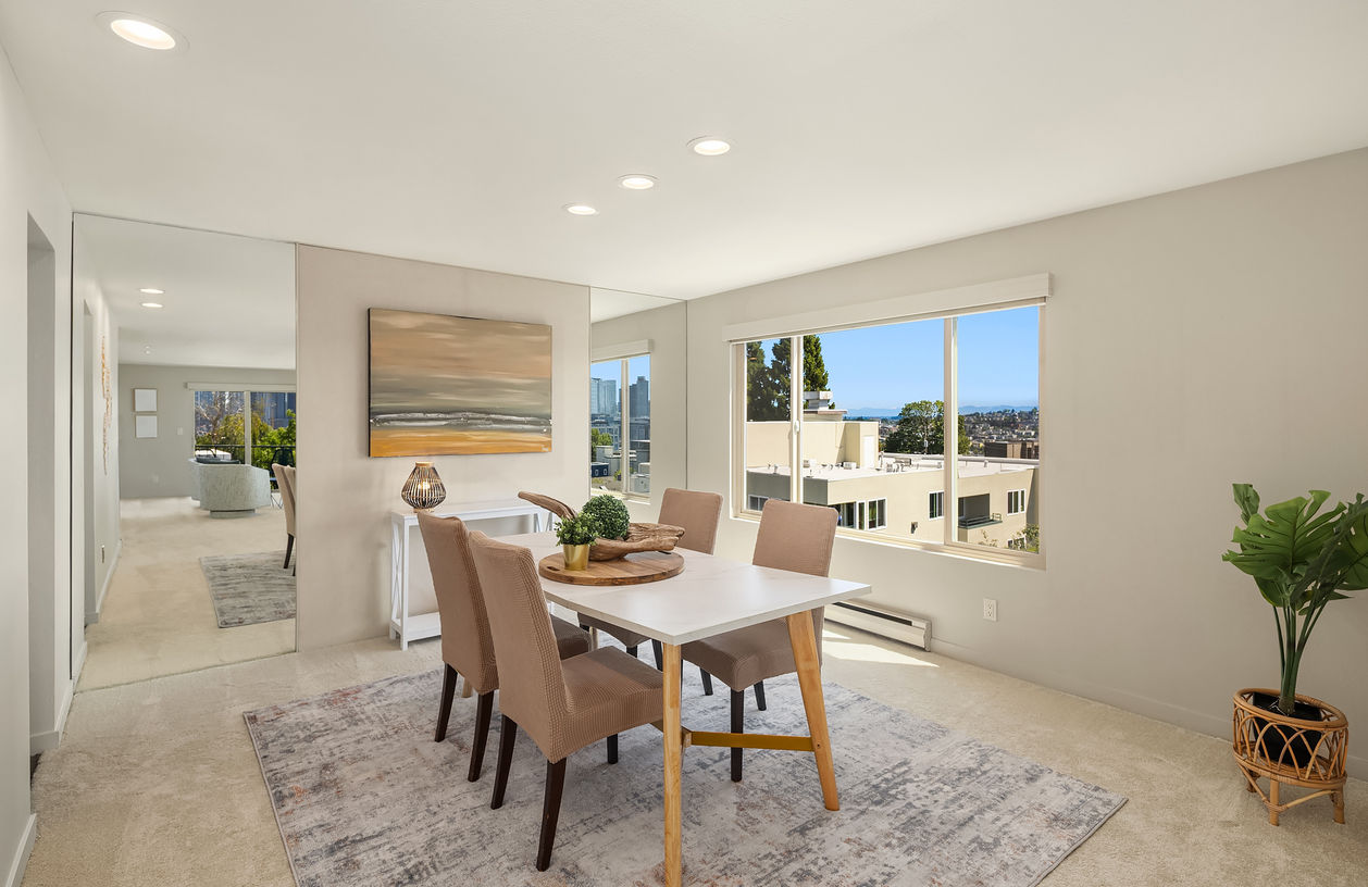 A rare 3-bedroom condo with 3 dedicated parking spots. The elegant interior features an updated kitchen with granite counters, large pantry, and a cozy wood fireplace that anchors the bright living & dining rooms. Step onto the covered deck to soak in the views—perfect for relaxing or entertaining year-round. Generous layout includes in-unit laundry, tons of storage throughout plus 2 storage units. No rental cap, strong HOA, Walkscore of 83, and unbeatable access to SLU, downtown, transit, shopping, dining & more.