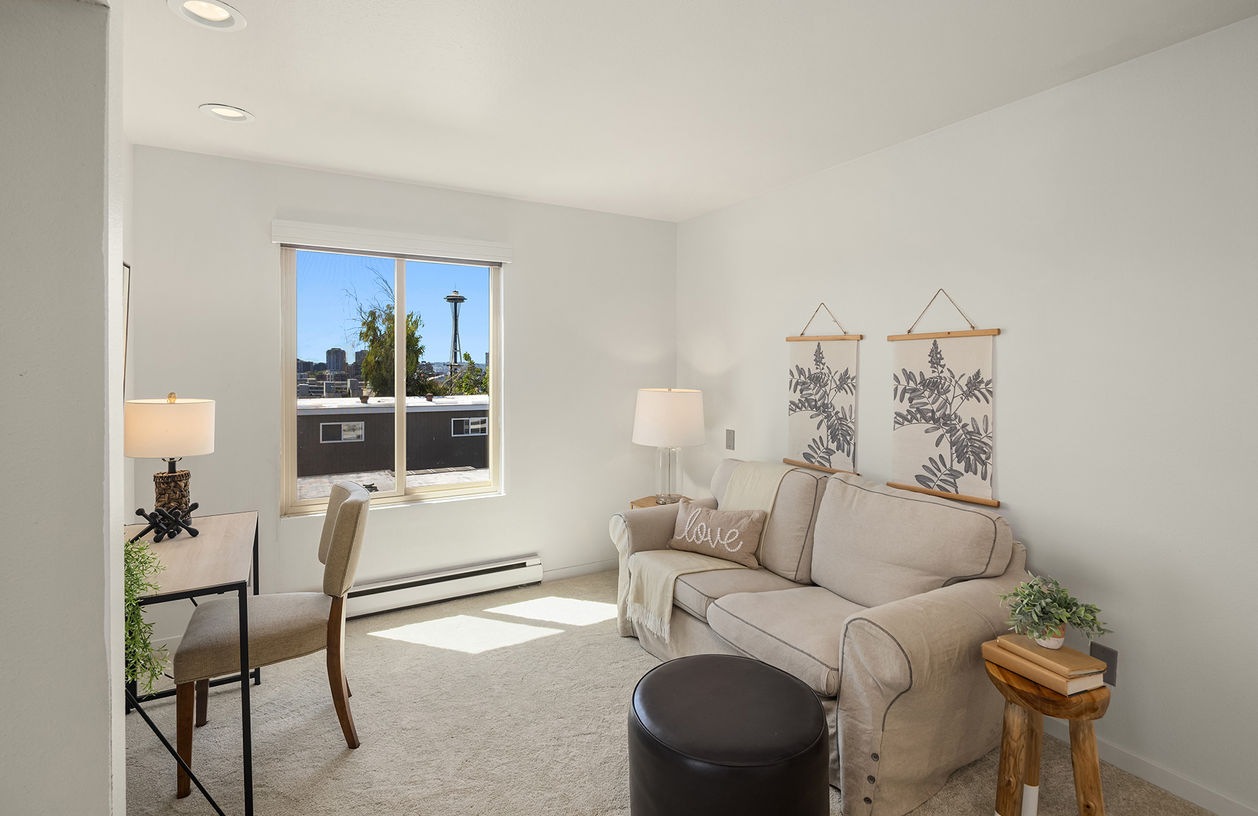 Sunny, spacious, top-floor corner unit in the heart of Queen Anne, offering sweeping 270° views of Lake Union, the Space Needle, downtown, and the Cascades—your own front-row seat to Seattle’s beauty!