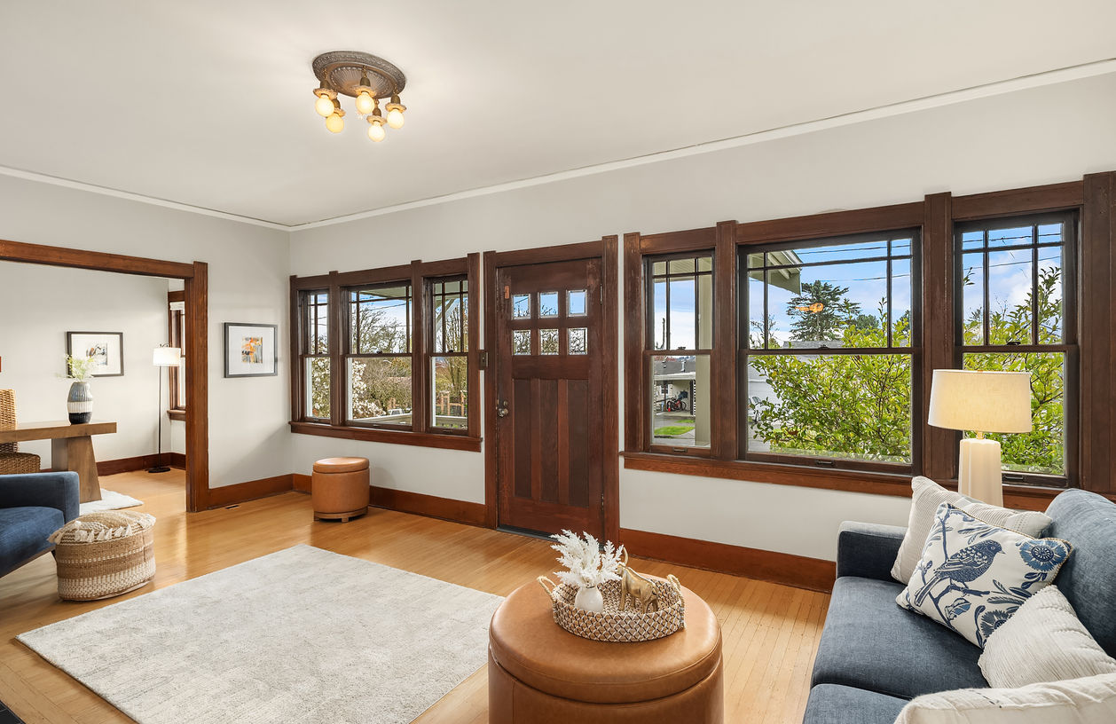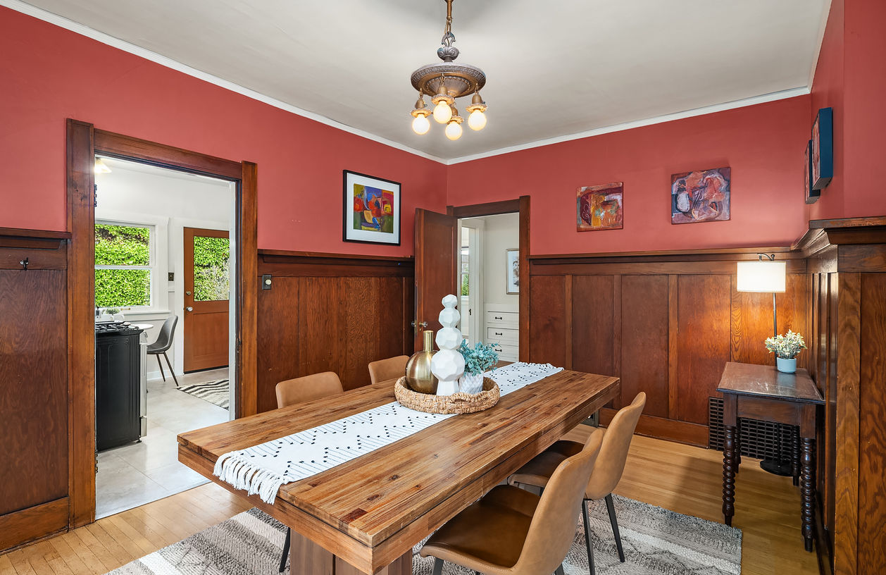 The spacious layout blends classic details with everyday livability, featuring beautiful hardwood floors, a warm and inviting living room with fireplace that creates a natural gathering space, and a den/office just off the main living area. The elegant formal dining room with rich wood wainscot sets the stage for memorable dinners, holiday gatherings, and effortless entertaining, while the updated kitchen offers plenty of space and functionality. A bedroom and bathroom on the main floor provide flexibility for guests, home office needs, or multi-generational living. Three additional spacious bedrooms upstairs all with large closets, and an updated bathroom, plus a generous landing that can serve as a playroom or bonus space. The large basement with tall ceilings offers endless potential to expand and customize. Front and back porches invite you to relax and enjoy the setting, while alley access, a detached one-car garage, and a large parking area provide convenience. Many major systems have been updated. Easy access to transit, downtown, parks, Golden Gardens, the Ballard Locks, Shilshole Marina, shopping, and all the fun cafes, restaurants, and shops Ballard has to offer.