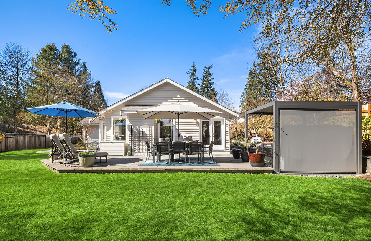 A beautifully designed outdoor retreat takes center stage in this sunny, light-filled rambler set at the end of a quiet private road in Brier